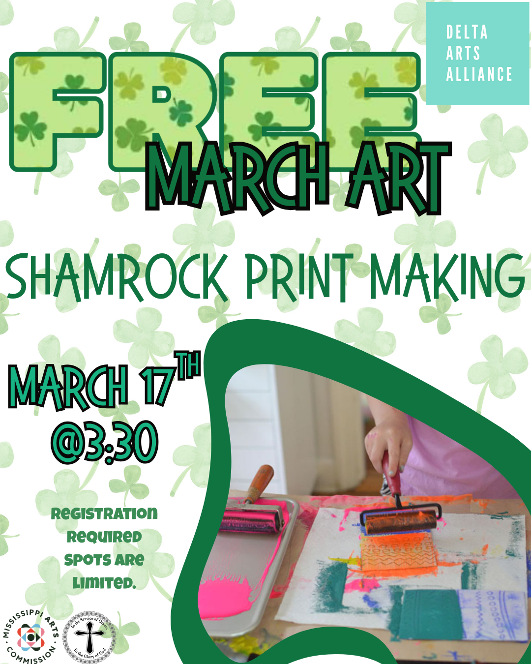 Celebrate St. Patrick’s Day with a fun, free youth art activity focused on the creative process of printmaking! Participants will use foam trays to design and create their own St. Patty’s Day–themed prints while learning how images can be transferred through repetition and layering. This hands-on activity encourages experimentation and playful exploration of texture and pattern. This activity is free, but registration is required. Perfect for young artists looking to try something new and festive!